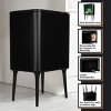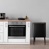 - The waste basket maintains a modern design with a stylish black basket that conceals unsightly trash without compromising your décor aesthetic