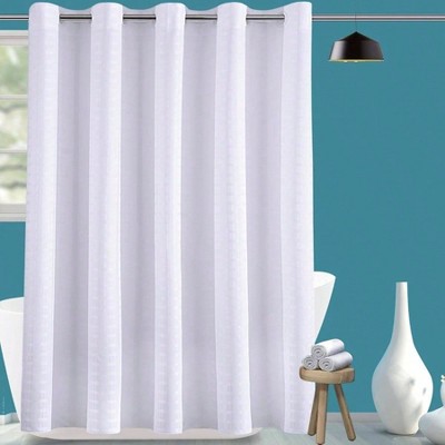 3 - in - 1 Shower Curtain Waffle Fabric Sheer Top Window Flex - On Rings Liner 71 inchx 74 inch White