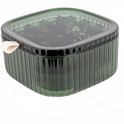 3-Layer Acrylic Jewelry Box with Handle, Clear Organizer and Storage Case for Jewelry & Cosmetics, Green