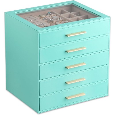 3-Layer Jewelry Box with Glass Lid & Drawers, Multi-Color Organizer for Necklaces, Rings & Earrings Green