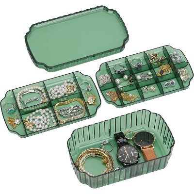 3-Layer Leather Jewelry Organizer Box, Large Storage Case for Earrings, Rings, Necklaces & Watches, Olive Green Olive Green-Multifunction