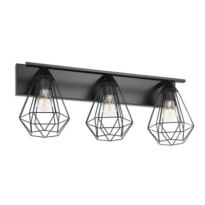 3-Light Grayson Bath Light Matte Black with White Glass Shade - EGLO: ETL Listed, Adjustable Head Tilt
