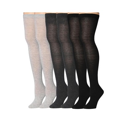AWS/American Made 3 Pairs Women’s Colorful Thigh-High Over-the-Knee Boot Socks – (Black-Beige-Purple)