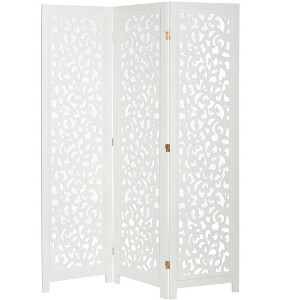 3-Panel Solid Wood Room Divider in White with Decorative Cutout Design
