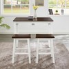 - Compact & Space-Saving Design for Small Living Areas The set includes a sleek bar table (41.5''L x 22''W x 35.75''H) and two high stools (24''H x 17.5''W x 9''D) that tuck neatly under the table when not in use. This maximizes floor space, making it perfect for apartments, lofts, or cozy dining nooks without sacrificing style or functionality.