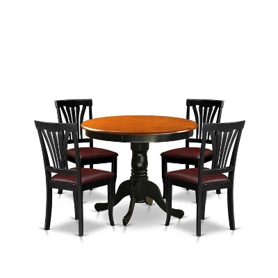 3-Piece Black Finish Solid Wood Top - Round Dining Room Set - Seats 4