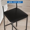 Elevate your dining experience with this space-saving counter height set, featuring a versatile pub table with three open shelves for storage and two comfortable upholstered stools. The industrial-chic metal frame combines with a durable wood tabletop to create a modern look perfect for kitchens, breakfast nooks, or apartment living. The 36-inch high table provides an ideal eating or working surface, while the included padded stools with back support tuck neatly underneath when not in use. The smart design maximizes vertical space in small areas without sacrificing style or functionality.
