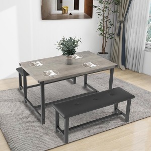 3 Piece Dining Room Table Set, with 2 Upholstered Benches