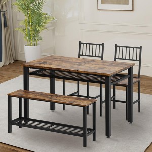 3-Piece Dining Set, MDF Iron Table, Under-Shelf, Two Chairs, One Bench, Rustic Finish, Space-Saving, Easy Assembly, Apartment Essential