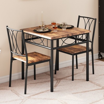 This 3-piece industrial dining set is designed for small spaces like apartments and kitchens. It includes a sturdy wooden table and two matching metal-frame chairs. The compact design maximizes space while maintaining style, making it perfect for breakfast nooks, cozy kitchens, or studio apartments. Easy to assemble and durable for daily use.
