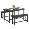 3 Piece Dining Table Set for 4, 44" Kitchen Table with 2 Benches, Wooden Rectangular Kitchen Table Set, Space Saving Breakfast Table, Black