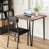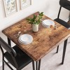 This 3-piece dining set is designed for small spaces, comfortably seating two people with a compact footprint that allows the chairs to tuck neatly under the table for maximum space efficiency. The set includes a sturdy table and two ergonomic, high-back chairs with thick padding, ideal for meals, coffee breaks, work-from-home, or intimate gatherings. Featuring a blend of rustic MDF wood and reinforced steel, the modern industrial design boasts a sleek woodgrain finish and I-shaped metal legs. Built for durability and comfort, the table supports up to 220 lbs and each chair up to 300 lbs, while easy-clean PVC surfaces and a curved table edge provide both convenience and enhanced safety for everyday home use.