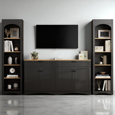 3-Piece Modular Entertainment Center – Includes a TV stand, bookshelf, and side cabinet that can be arranged together as a wall unit or used separately. Versatile for use in the living room, study, or dining room. Fits TVs up to 70 inches.