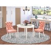 3-Piece Linen White Finish Round Solid Wood Top Dining Table Set