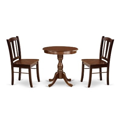 3-Piece Mahogany Finish Solid Wood Top - Dining Room Set - Seats 4