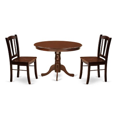 3-Piece Mahogany Finish Solid Wood Top - Dining Room Set - Seats 4