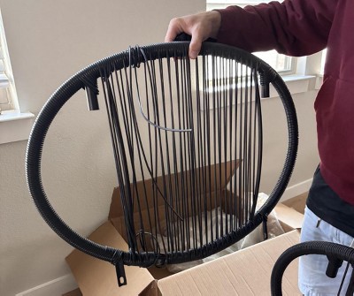 Upgrade your outdoor space with this modern 3-piece Acapulco chair bistro set, perfect for relaxing in the backyard, garden, balcony, or small patio. The powder-coated steel frames and woven seat design provide exceptional durability and weather resistance, ensuring long-lasting enjoyment. The included side table features a smooth steel top for convenient placement of drinks, books, or snacks. With easy assembly and a contemporary chic look, this set is ideal for creating a stylish spot to unwind outdoors.