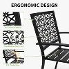 • Designed for comfort, the contoured seats and backrests cradle your body while the open design promotes airflow, ensuring this outdoor bistro set provides all-around comfort for morning coffee or evening cocktails