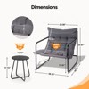 • Practical Coffee Table: The included metal coffee table offers a stable surface for beverages, books, or snacks, featuring an easy-to-clean top that withstands outdoor use.