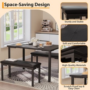 3-Piece Dining Table Set, 43.3'' Kitchen Table with 2 Upholstered Dining Benches for Dining Room, Apartment, Small Space