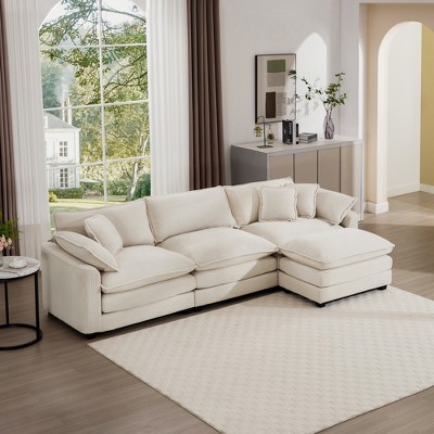 3-Seater Corduroy Mid-Century Modern Sofa with 2 Arm Pillows and 3 Throw Pillows for Living Room