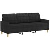 - This 3-seater sofa is the perfect mix of style and comfort, making it a great addition to any living room or casual space. With its chic black fabric and clean, modern lines, it brings a sense of elegance that fits various interior styles. Comfort: Thickly padded seats and back provide top-notch comfort for relaxing or entertaining.Durability: Built with tough polyester fabric, ensuring it lasts and stands up to wear.Versatile Use: Great for reading, chatting, or lounging, perfect for social hangouts.Ample Space: Generous seating dimensions give plenty of space for family and friends.Easy Cleaning: Seat cushions come with zippered covers for hassle-free cleaning and upkeep. Color: Black Shape: RectangularMaterial: Fabric PolyesterFinish: Matte Indoor/Outdoor: Indoor OnlyCover Included: NoRoom: Living RoomCapacity: 3 SeaterMaximum Number of People: 3Dimensions: 30.3 x 78.0 x 31.5 in (W x L x H)Leg Height: 5.9 inWeight: 57.32 lbsSeat Depth: 19.7 inSeating Capacity: 3Swings: NoDelivery Contains: 3-seater sofaAssembly Required: YesRecommended Number of People for Assembly: 2