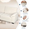 Generously sized 90.55x31.50x24.41 in sofa perfect for 2-3 people to relax comfortably. Features ultra-soft, wide armrests for excellent lounging support. Upholstered in soft, skin-friendly beige velvet for a chic look and cozy feel. Removable, washable cushion covers make cleaning easy. Quick and simple assembly with clear instructions and labeled parts.