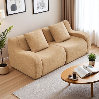3-Seater Teddy Fabric Boneless Modular Sofa with 32D High-Density Sponge, No Assembly