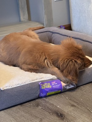 Create a comfy retreat for your pet friend with this Three-Sided Bolster Dog Bed from Boots & Barkley™. Designed in a classic rectangular silhouette, this dog bolster bed features a raised bolster sides on three sides to offer them a comfy place to rest their head. Draped in a soft fabric with soft foam filling, it features a faux-shearling surface for cozy comfort during nap time, sleeptime or simply while sitting. The non-slip base helps keep it in place, while the removable cover can be tossed in the washing machine for easy upkeep whenever needed. Featuring a gray hue with cream faux-shearling sleep base, it's sure to complement your existing decor style.