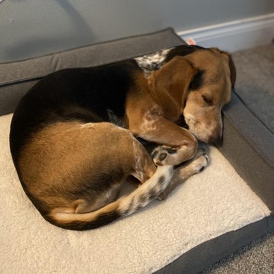 Kevin loves it! He sleeps in it every day. I initially got it for both of my beagles, but Kevin loves sleeping in it most. This is in my office. It’s the perfect size for him and it is a single dog bed. There is zippers to take out all the inserts that way I can wash it if I need to the Sherpa is so soft and it’s the best feeling when I hear snores because he is extremely comfortable in this bed