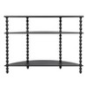 This 3-Tier Curved Accent Table combines sleek design with practical storage. Featuring a unique curved front edge and a flat back, it’s perfect for positioning against walls or in tight spaces. The three beveled shelves provide ample room for displaying decor, books, or small essentials, while the doweled legs ensure stability and a minimalist aesthetic. Finished in matte black, this accent table adds a modern touch to any space, blending both function and style seamlessly.