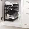 This organizer is a versatile solution for maximizing storage space, particularly under sinks and in small areas. Guests appreciate its sturdy construction and smooth-gliding drawers, making it ideal for organizing various items from bathroom supplies to kitchen essentials. Its compact design allows it to fit neatly in tight spaces, while the top surface provides additional storage options. Overall, it enhances organization and accessibility, making it a valuable addition to any home.