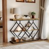 - 【O-Shaped Frame with 2 Shelves】 This rustic console table features double Diamond-Shaped metal frames and adjustable feet make the side table increase the stability. It will not shake during use and can prevent the floor from scratching. With 2 built-in storage shelves—perfect for books, décor, or small essentials. The open bottom space is ideal for baskets, magazines, or extra storage.