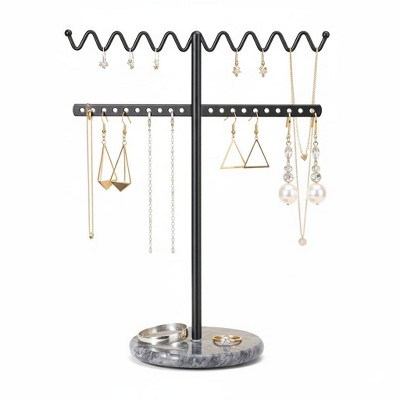 - [Easy-Peasy Assembly] Your jewelry display stand is just 2 steps away: simply take out the base, screw the 3 metal T-bars to the base, and then it's ready to help you put your favorite jewelry collection on display