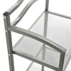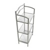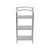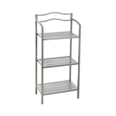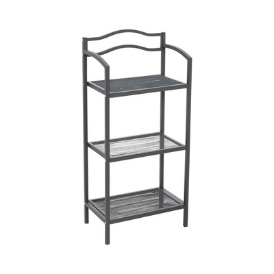 - This elegant storage rack showcases 3 stylishly functional metal mesh shelves topped with a sleek, decorative arch