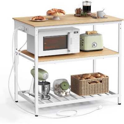 3 Tier Rolling Cart w/Table top, Metal Rolling Utility Cart on Wheels, Sturdy Storage Organizer Cart w/Hooks for Office, Classroom, Kitchen