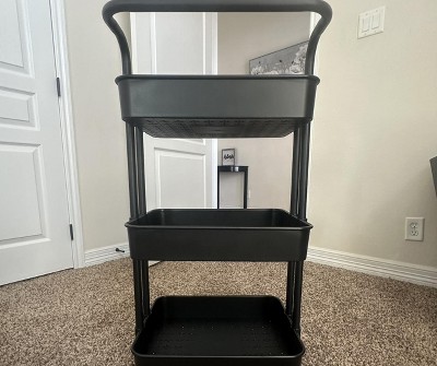 3 Tier Rolling Cart W/Wheels Practical Handle&ABS Storage Basket Organizer Black