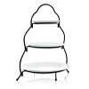 Take serving to the next level with the Elama 3 Tier Round Plate Porcelain Serveware Set. This three tiered set has a clean modern design that will fit perfectly with any home decor and place setting. Serve a different app on each tier or use for confections after your guests have had their fill! Constructed with a sturdy metal rack that holds three porcelain serving plates snugly. This serving set is perfect for parties or for every day countertop storage use!
