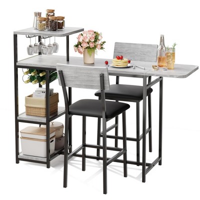 3-Piece Bar Table Set with Storage - Counter Height Dining Table & 2 Stools, Space-Saving Kitchen Set with Drawer & Shelf for Small Spaces - 2 of 43-Piece Bar Table Set with Storage - Counter Height Dining Table & 2 Stools, Space-Saving Kitchen Set with Drawer & Shelf for Small Spaces - 3 of 43-Piece Bar Table Set with Storage - Counter Height Dining Table & 2 Stools, Space-Saving Kitchen Set with Drawer & Shelf for Small Spaces - 4 of 4