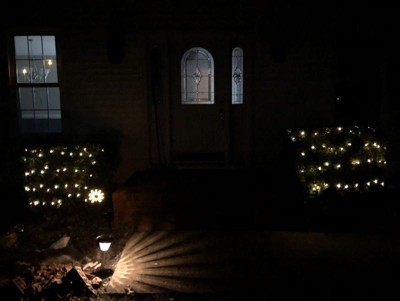These three foot by four foot Christmas net lights are pretty cool. I wasn't sure exactly how they were going to be to set up, but it was actually really easy and straight forward. They come with a little solar panel, so there's no need for batteries here, they recharge during the day and run all night. The wires themselves aren't super thick so they blend in well during the day, and then light up nice at night. I just wish they were bigger, three by four feet is kind of small for my large bush, but it still brings a nice bit of Christmas to the outdoors. They definitely seem durable, and I'm not worried about the wind as they seem to really stick to the branches well.