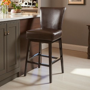 30.25" Leather Swivel Bar Stool with Ergonomic Back & Solid Wood Legs - 1 of 4