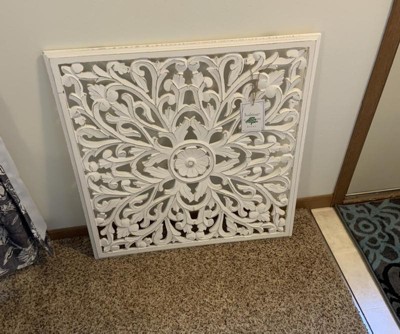 30" Beakman Square Medallion Wall Art White - Brewster: Modern MDF Carved Decor, Includes Hanging Loops