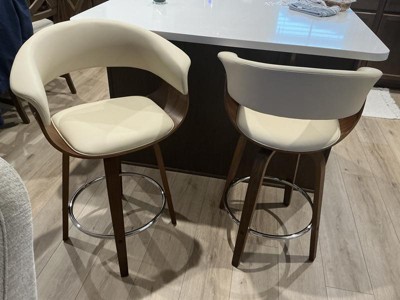 Armen Living 30" Julyssa Swivel Faux Leather Wood Counter Height Barstool Cream : Upholstered, Footrest, Fixed Height