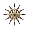 Dial back to the turn of the century and you'll quickly realize why this oversized Orion wall clock is bursting with bounds of style. Inspired by midcentury designs yet given a modern twist, this starburst wall clock has been balanced for versatility. The rustically rich shade of natural walnut wood and the luxuriousness of golden brass metal hardware fuse together to yield a piece that is decoratively indicative of the craftsmanship for which these ancient times are revered. Although it is often displayed in homes with a medieval aesthetic, our radiantly large wall clock has a unique way of blending in with all kinds of home or office décor.