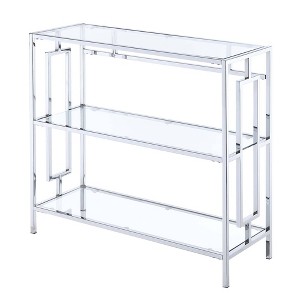 Complete any room in your home with the Town Square Chrome 3 Tier Bookshelf by Breighton Home. With this sleek open concept piece, you can show off your favorite books, collectibles, and decor. The shelves are made from tempered clear glass, allowing this bookcase to be easy maintenance and durable. The frame is constructed from chromed metal and is sure to beat the test of time. Add to your ensemble right after delivery with its simple 4-step assembly. Shop coordinating pieces from the Town Square Collection by Breighton Home, each sold separately.