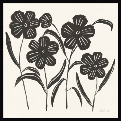 30" x 30" Floral Simplicity II Cream by Danhui Nai Framed Canvas Wall Art Print - Amanti Art: Botanical Lithograph, Modern Decor