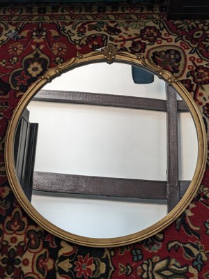 Do traditional aesthetics inspire you? If so, check out the beautiful Marchon mirror. This lovely mirror takes inspiration from both baroque and French provincial design periods, featuring a lovely round shape with a cascading ornamental crown. This beautiful accent piece also features an antique gold finish on the frame to further your luxurious style while capturing that vintage glam aesthetic. The Marchon mirror is a large statement to showcase in any room, with a diameter of 30 inches to create a focal point that unites the decorative aesthetic throughout your space. This wall mirror is great for adding dimension and vibrancy to your living room mantle, over a stylish entryway console, or above an elegantly-carved dresser in your bedroom. If you want to give your master bath a glam remodel, this effortlessly elegant mirror also looks fantastic as a bathroom vanity mirror. To hang the Marchon mirror, use the metal sawtooth hangers found on the back of the frame.