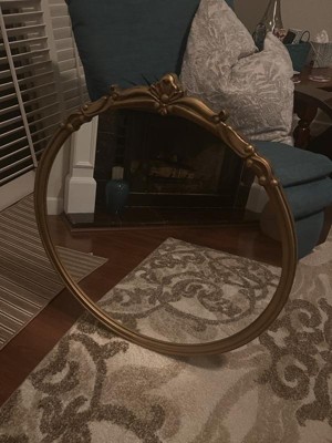[This review was collected as part of a promotion.] I love this mirror! It is so beautiful and well made. It’s a heavy solid piece. I had originally planned on using it in our bathroom remodel, but I think it’s too fancy for the vanity we have in there, so my daughter convinced me to let her use it in her room/guest room when she’s in college. It has enough design and gold to go well in a formal design, but the wood frame makes it versatile for boho or maybe even farmhouse style.