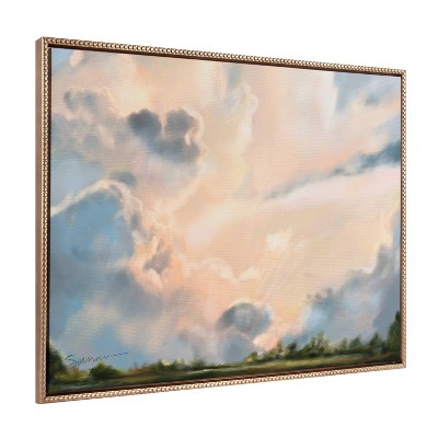 FRAME DETAILS: The canvas is framed in the Sylvie Beaded White frame, which is a vintage float frame featuring a traditionally beaded ornate design with white coloring, a subtle woodgrain pattern and dramatic depth. The frame measures 1 in. wide and stands 2 in. off the wall. The canvas appears as if it is floating in the frame because it has a narrow gap between the edge of the canvas and the frame. The overall size of this framed canvas print measures 30 in. W x 30 in. H.