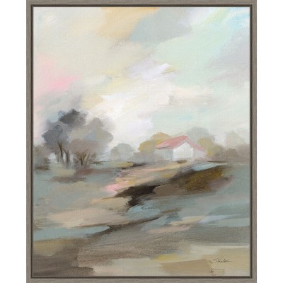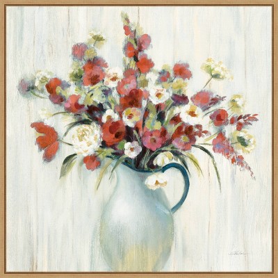 FRAME DETAILS: The canvas is framed in the Sylvie Beaded Bronze frame, which is a vintage float frame featuring a traditionally beaded ornate design with light bronze coloring, subtle antiquing and dramatic depth. The frame measures 1 in. wide and stands 2 in. off the wall. The canvas appears as if it is floating in the frame because it has a narrow gap between the edge of the canvas and the frame. The overall size of this framed canvas print measures 30 in. W x 30 in. H.